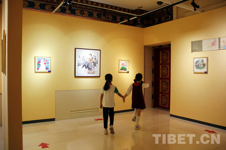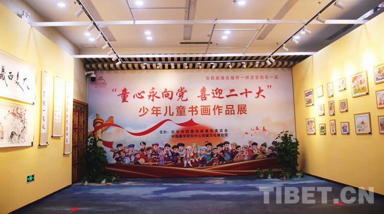 圖為西藏文化博物館“童心永向黨,喜迎二十大”少年兒童書(shū)畫(huà)作品展序廳 攝影:劉莉