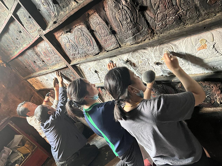 圖為日喀則市石刻藝術博物館工作人員開展石刻文物拓印工作 圖片來源:日喀則市文化局官網(wǎng)