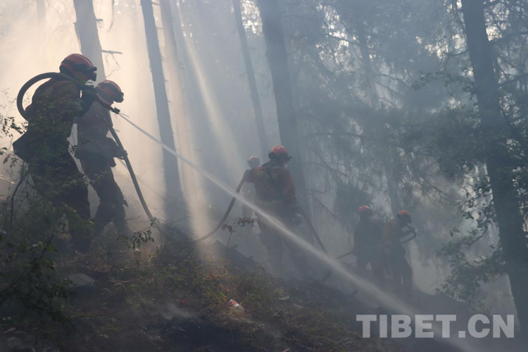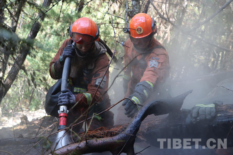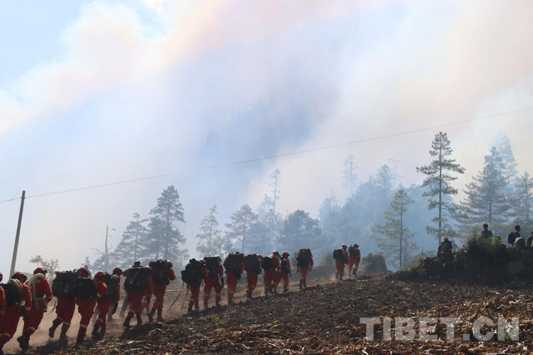 火場上,不說有感天動地的故事,但是那種“無畏火魔、不怕犧牲、舍我其誰、團結(jié)協(xié)作”的故事卻到處可見。那天,我們在接警后,第一時間趕赴現(xiàn)場,當(dāng)看到一條長長的火線猶如一條蜿蜒的巨龍盤旋在空檔村山腰,火舌在大風(fēng)助威下翻滾著向南側(cè)撲去時,飛哥和我各帶領(lǐng)10名黨員骨干以南北兩翼夾擊的陣勢迎戰(zhàn)火魔。在高達2800米的原始林區(qū),夜里溫度接近-5℃,槍頭手高琪已全身上下濕透并伴隨冰片的出現(xiàn),隱約透著讓人冷顫的寒光,顫抖的身體讓槍頭不斷左搖右擺,但他毅然肩扛槍頭,勇斗火魔。撲救完畢后,剛要準備休整,中隊接到殲滅山頂火點的任務(wù),火情就是命令,指戰(zhàn)員背著沉重的裝備在近70-80度的亂石陡坡上,抓著樹枝一步步向上攀爬,16年兵齡的王建紅在爬山過程中使勁喘息,即使空氣中彌漫著飛舞的灰,也為吸取更多的氧氣保持體力;接近山頂時,一顆直徑約80cm的滾石從山頂滾落,體型弱小的二級消防士曹橋在緊促的避險哨音中采取緊急避險措施成功躲避,滾石與他擦肩而過,但危險的環(huán)境未能抑制他戰(zhàn)斗的決心。中隊指戰(zhàn)員暢談此次滅火作戰(zhàn)感受時,都紛紛笑言:“我們從海拔2300米打到了3700米,相當(dāng)于從察隅到了拉薩。”31日,中隊轉(zhuǎn)戰(zhàn)火場西南線,此時經(jīng)過5天的連續(xù)奮戰(zhàn),指戰(zhàn)員的思考能力和興奮的感覺消失殆盡,只剩下機械式行走的軀體,膝蓋有舊傷的戰(zhàn)斗班班長王明因為超負荷運動已疼痛難忍,但他在咬牙堅持。班長宋遠金、扎西歐珠主動擔(dān)當(dāng)不畏艱險,從不到2300多米的地方,背著滅火裝備和滿滿的水桶,爬到4000米的山頂排除隱患,清理煙點。