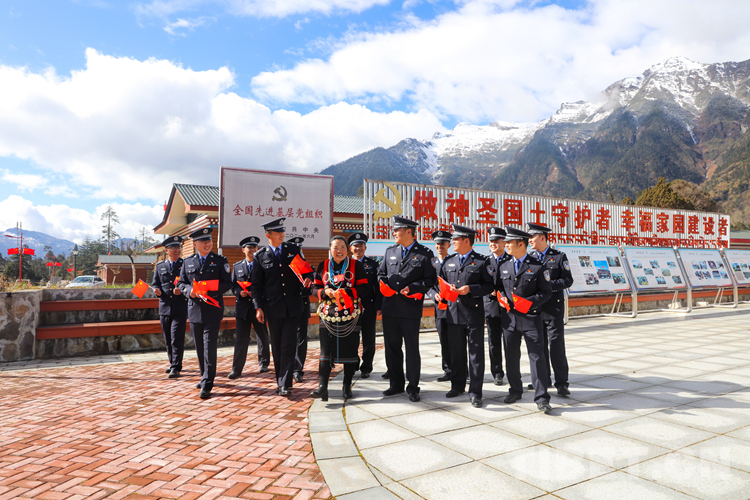 宣講結(jié)束后,米林邊境管理大隊民警與亞夏在瓊林村的天邊牧場,舉行重溫入黨誓詞活動,表達(dá)對黨的深深熱愛?;顒幼詈?,民警與亞夏還共同高歌了《沒有共產(chǎn)黨就沒有新中國》。(中國西藏網(wǎng) 通訊員/張力 記者/王佳豪)