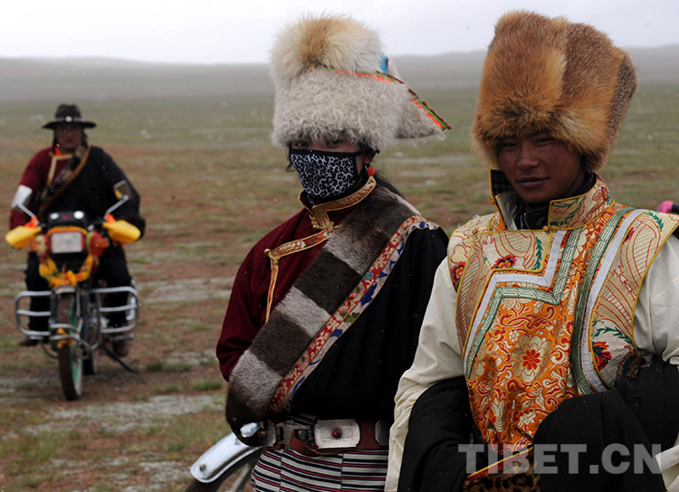 這是在慶祝雙湖建縣活動(dòng)中,一位盛裝青年牧民冒雪前去參加賽馬比賽(唐召明2013年7月26日攝)