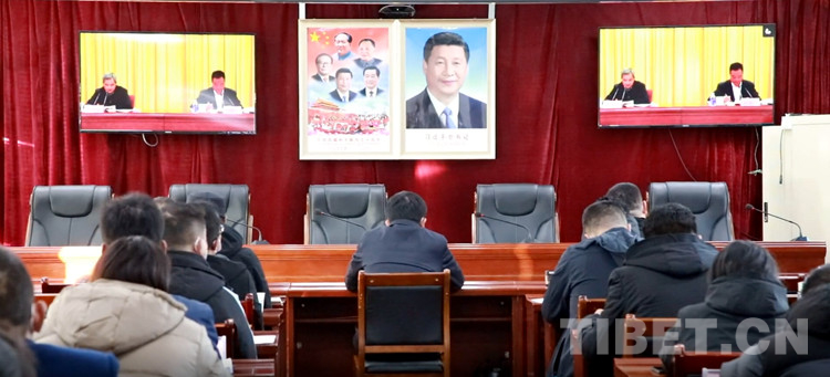 圖為日土縣自然資源局干部職工集中收看黨的二十大精神中央宣講團(tuán)報告會
