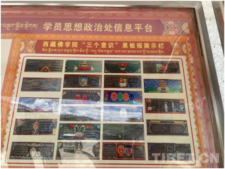 圖為西藏佛學(xué)院“三個(gè)意識(shí)”黑板報(bào)展示欄