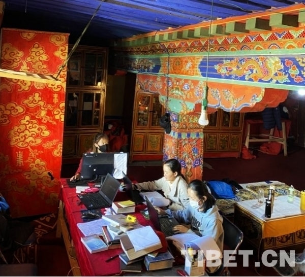 圖為2021年,西藏民族大學(xué)實(shí)習(xí)生對(duì)布達(dá)拉宮藏經(jīng)進(jìn)行記錄和統(tǒng)計(jì)