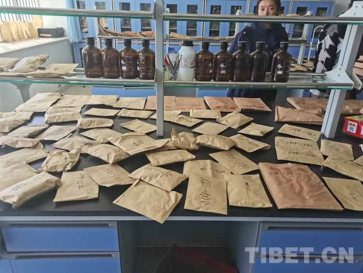 圖為西藏自治區(qū)農(nóng)牧科學院草業(yè)科學研究所科技人員將采集到的牧草種質(zhì)資源在實驗室內(nèi)預(yù)處理