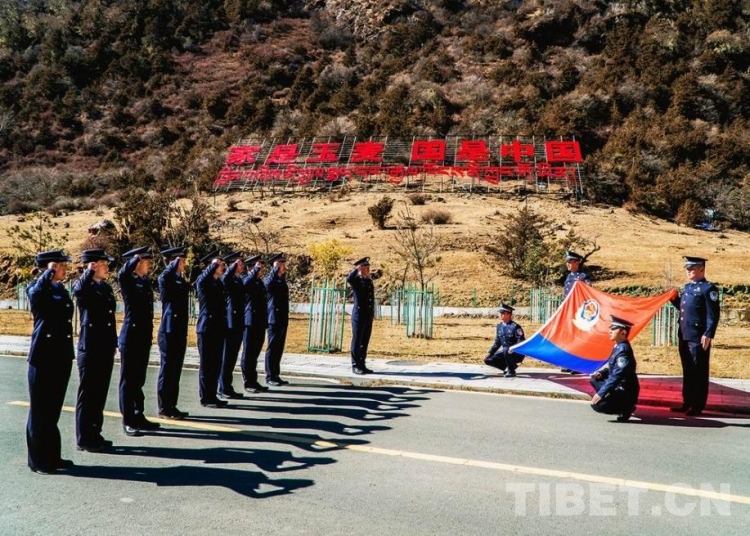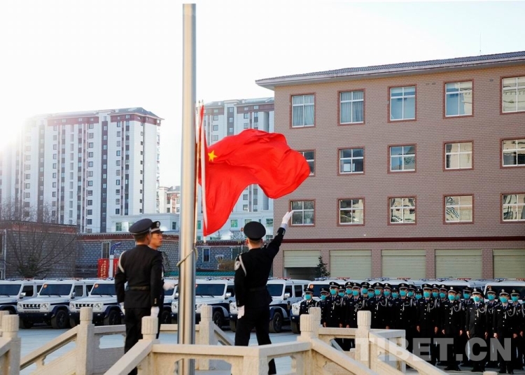 圖為山南邊境管理支隊舉行“升國旗 唱國歌”儀式 鄭琦山 攝
