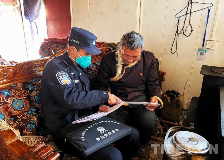 圖為玉麥邊境派出所民警深入群眾開展普法活動 袁浩杰 攝