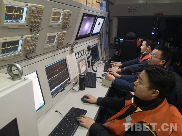 “今天我們的探傷檢測(cè)任務(wù)是拉薩至日喀則西,作業(yè)過(guò)程中大家一定要緊盯圖譜和波形變化,確保采集數(shù)據(jù)的質(zhì)量,司機(jī)要嚴(yán)格控速,確保行車(chē)安全?!眳谴涸蟮?。從大年三十到大年初三,探傷車(chē)隊(duì)的職工一直在探傷車(chē)上吃住、工作,大家就像一家人一樣在工作崗位上共度春節(jié)。