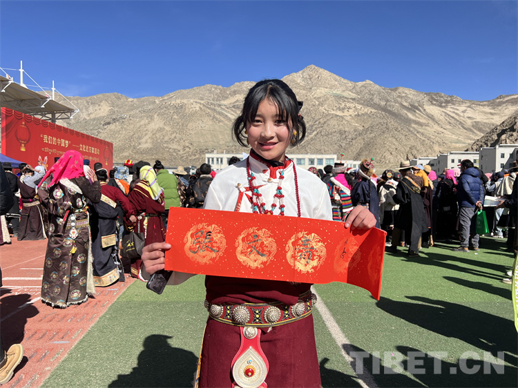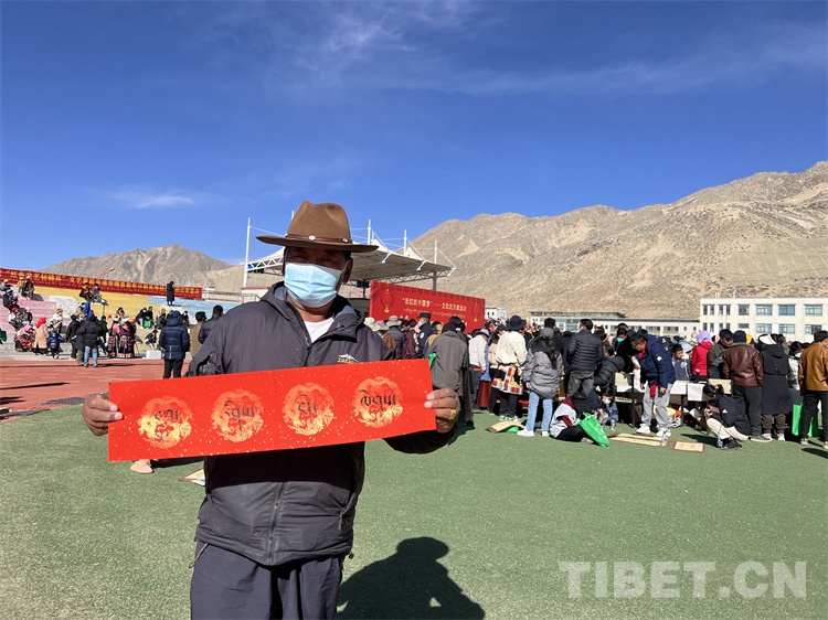 “我來自那曲安多縣,在森布日生活已有近一年,這里氣候暖,基礎(chǔ)設(shè)施齊全,真是趕上了好政策”66歲的多布杰說,他還主動(dòng)拿起書法家現(xiàn)場書寫并贈(zèng)送給他的吉祥對聯(lián)說:“今天真是很開心,觀看了一場精彩的節(jié)目,還得到了書法家寫的‘扎西德勒’吉祥對聯(lián),這個(gè)我要貼在家里的門窗上”。