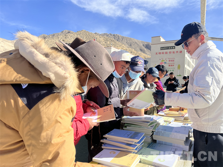在送“書籍” 現(xiàn)場,《西藏文學(xué)》《西藏文藝》《邦錦梅朵》三個(gè)編輯部工作人員為現(xiàn)場群眾和當(dāng)?shù)?span style="text-align: center; background-color: rgb(253,242,234)">干部贈(zèng)送書籍,當(dāng)?shù)厝罕姾蛯W(xué)生們紛紛前來翻看尋找自己喜歡的書籍,大家人手幾本書?!拔移綍r(shí)喜歡閱讀藏文文學(xué)作品,這次要了兩本文學(xué)相關(guān)書籍拿回家閱讀”17歲的益西巴珍說。據(jù)了解,此次活動(dòng)西藏文聯(lián)向熱愛閱讀的群眾和學(xué)生共贈(zèng)送1500本(冊)文藝書籍和期刊。