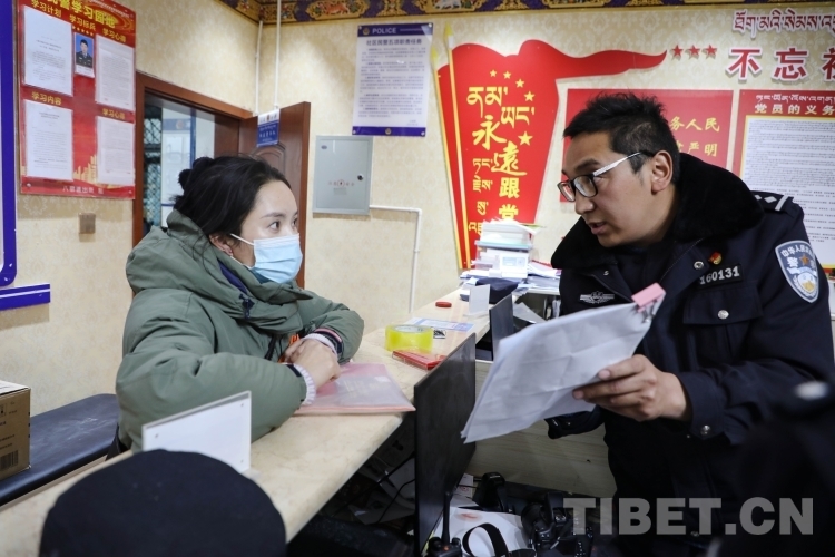 “我們警務室還有兩名漢族警察,強子就是其中之一,大家一起執(zhí)勤一起值守,工作氛圍特別融洽?!倍嗉蹇谥械膹娮泳褪莿姡蔷瘎帐覟閿?shù)不多的漢族警察。劉強在西藏民族大學畢業(yè)后就來到警務室工作,已經工作了11個年頭,主要的工作是轄區(qū)范圍內流動人口、常住人口的信息采集、匯總、統(tǒng)計,暫住證的辦理發(fā)放等。