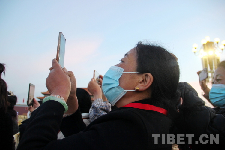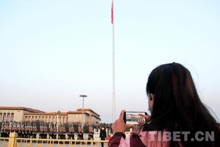 清晨6時許,軍樂團(tuán)在天安門廣場就位?!罢阶?!”隨著一聲響亮的口令,國旗護(hù)衛(wèi)隊邁著鏗鏘的正步,拱衛(wèi)國旗走過天安門城樓、金水橋?!跋驀炀炊Y!”6時9分,隨著響亮的口令,軍樂團(tuán)奏響了國歌《義勇軍進(jìn)行曲》,升旗手高高揚(yáng)起國旗,鮮艷的五星紅旗迎著朝陽冉冉升起。“2023年西藏基層婦聯(lián)干部赴京學(xué)習(xí)參觀團(tuán)”成員們紛紛用手機(jī)記錄下這難忘的時刻。
