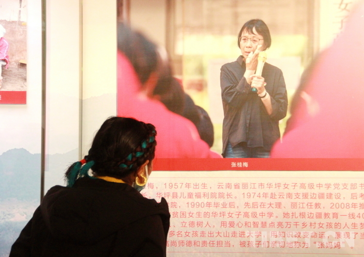 在眾多參觀展覽的人群中,有一位身著藏裝的西藏基層?jì)D聯(lián)干部,十分醒目,她總是笑意盈盈,用手機(jī)拍攝記錄著展覽的重點(diǎn),時(shí)不時(shí)與同伴分享心得。她叫索朗德吉,是來(lái)自西藏自治區(qū)林芝市工布江達(dá)縣江達(dá)鄉(xiāng)太昭村的婦聯(lián)主席,“通過觀看展覽,我系統(tǒng)了解到,百年來(lái),我們黨始終堅(jiān)持把實(shí)現(xiàn)婦女解放和發(fā)展、實(shí)現(xiàn)男女平等寫在自己奮斗的旗幟上。現(xiàn)在的西藏,男女平等,婦女也能當(dāng)領(lǐng)導(dǎo),在工作崗位上展現(xiàn)著‘婦女能頂半邊天’的巾幗力量。這事兒如果放到舊西藏,那是想都不敢想的。”索朗德吉說,“在中國(guó)共產(chǎn)黨的領(lǐng)導(dǎo)下,我們村早已發(fā)展成為天上有航線,地面有鐵路,生活富裕的小康村,聽黨話、跟黨走是太昭人不變的信念,回去后我要把聽到的、看到的、學(xué)到的,不光講給村里人,更要講給縣里人,激發(fā)出她們的民族自豪感,共同澆灌民族團(tuán)結(jié)的參天大樹?!?/p>