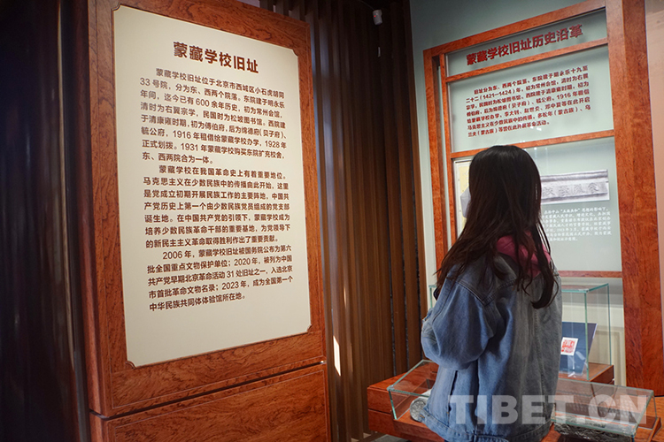舊址西院,“蒙藏學(xué)校舊址專(zhuān)題展”主要展示舊址歷史沿革和革命活動(dòng),蒙藏學(xué)校學(xué)生參加五四運(yùn)動(dòng);李大釗、鄧中夏、趙世炎等對(duì)蒙藏學(xué)校青年的馬克思主義啟蒙和革命引導(dǎo);烏蘭夫、多松年 等 蒙藏學(xué)校進(jìn)步青年參加校內(nèi)外革命活動(dòng)……突出展現(xiàn)中國(guó)共產(chǎn)黨成立后在這里組織開(kāi)展革命斗爭(zhēng)的歷史。“中華一脈 同心筑夢(mèng)”主題展分為“共同締造新中國(guó)”“團(tuán)結(jié)建設(shè)新社會(huì)”“攜手奮斗繁榮路”“同心奮進(jìn)新時(shí)代”4個(gè)部分。展出照片420多幅,實(shí)物、文獻(xiàn)、檔案280余件,藝術(shù)展 項(xiàng) 18項(xiàng),重點(diǎn)展示新時(shí)代民族工作取得的新的歷史性成就。