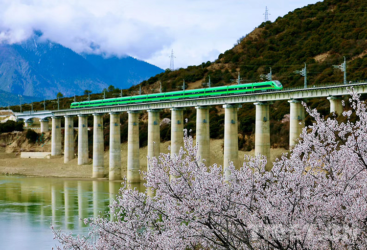 桃花繁茂映高原,如何讓更多游客走進藏東南,去領(lǐng)略最美藏鄉(xiāng)桃花源,鐵路部門想盡了辦法。作為西藏首條也是目前唯一的電氣化鐵路——拉林鐵路,鐵路部門有效釋放這條藏東南地區(qū)運輸大動脈的作用,動態(tài)優(yōu)化列車開行模式,做好運能運力的調(diào)整配置。林芝各地因海拔、地形、氣候各不相同,桃花綻放的時間從每年三月底持續(xù)到四月中下旬,在察隅、波密、朗縣、工布江達、米林、墨脫等地區(qū)依次開放,頗有“你方唱罷我方登場”的秩序感。鐵路部門結(jié)合這一特點,將拉林鐵路列車開行和“林芝桃花節(jié)”深度融合,采取“一日一圖”“一車一策”“一線一策”的列車開行和售票模式,動態(tài)分析每日客流數(shù)據(jù),有序加開旅客列車。這些科學(xué)精準(zhǔn)的客運組織和列車開行模式,有效滿足了不同旅客的出行需求,讓八方來客來西藏林芝的賞花之旅更加方便、更加快捷、更加高效。