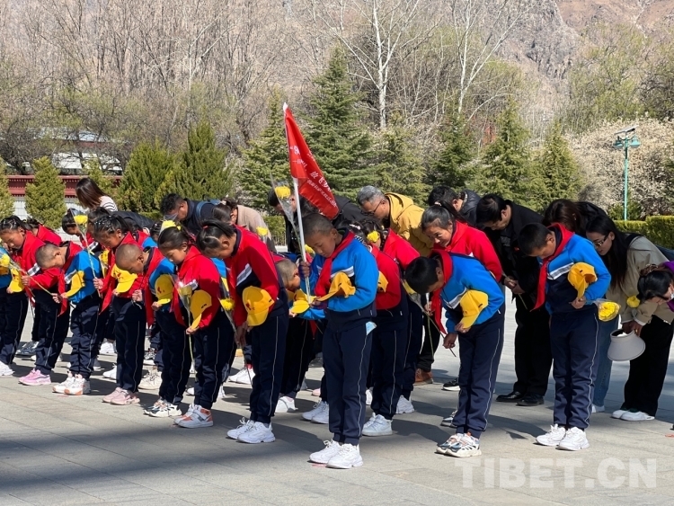 中國西藏網(wǎng)訊 4月12日上午,由西藏煙草駐日喀則市昂仁縣第十一批駐村工作隊、江蘇商會黨委、冬日暖陽愛心公益組織承辦的“領(lǐng)略非凡世界、放飛多彩夢想”公益活動工作組帶領(lǐng)來自西藏日喀則市昂仁縣多白鄉(xiāng)的30名小學生來到位于拉薩市西郊的拉薩烈士陵園緬懷革命先烈。