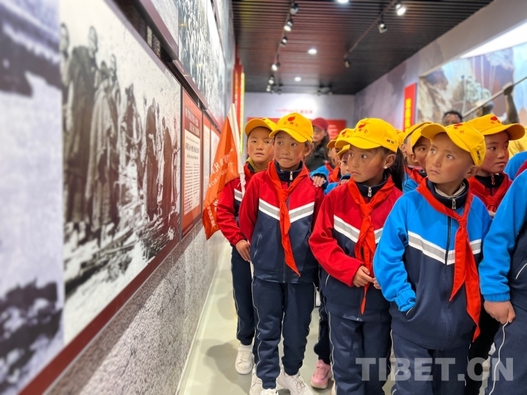 學生們來到東側(cè)烈士紀念館,在講解員的帶領(lǐng)下,認真聆聽“為西藏和平解放獻身的英烈永垂不朽”“為修筑川藏、青藏公路獻身的英烈永垂不朽”“為西藏平叛和民主改革犧牲的英烈永垂不朽”“對印邊境自衛(wèi)反擊作戰(zhàn)中犧牲的英烈永垂不朽”“為社會主義新西藏發(fā)展與穩(wěn)定犧牲的烈士永垂不朽”“忠魂永存”等6個單元,他們時而聚精會神地聽講解員講述相關(guān)內(nèi)容,時而指著圖文并茂的墻體討論?!敖裉靵淼搅沂苛陥@緬懷革命先烈,在紀念館看到了很多英雄事跡,很多都是第一次看見、聽見?!彼哪昙壍牡┌痛稳收f。