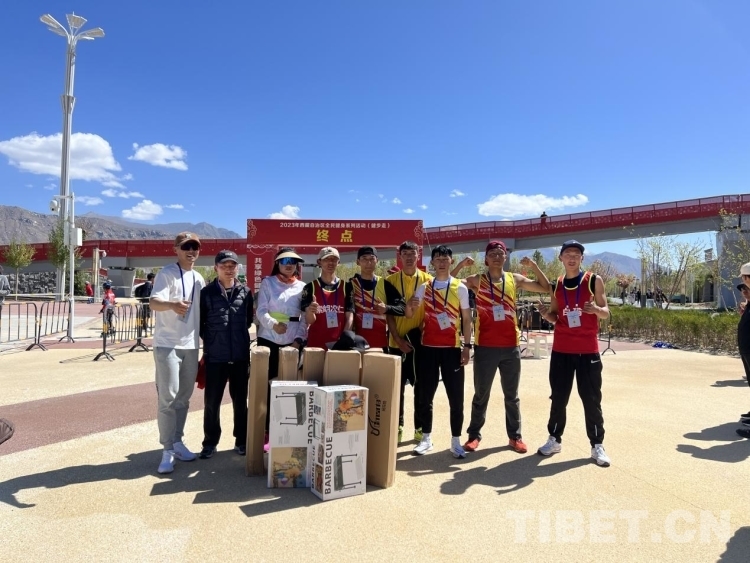 隨后其他組也紛紛來到終點(diǎn),憑自己的名次到各個領(lǐng)獎處拿獎勵,拍紀(jì)念照,現(xiàn)場十分熱鬧。“我們是北高的學(xué)生,通過體育老師得知這個活動,便報名參賽,活動很有意義,不僅對強(qiáng)身健體有幫助,還能帶動全民健身的氛圍,”在健步走活動中獲得第六組第一名的拉薩市北京高級中學(xué)學(xué)生旦增美朗說。