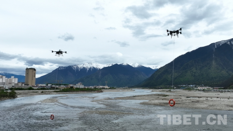 按照演習(xí)方案,此次演習(xí)包括應(yīng)急響應(yīng)、力量投送、地震救援處置行動、落水車輛救援行動、偏遠(yuǎn)山區(qū)救援行動、森林火災(zāi)撲救行動等內(nèi)容。圖為林芝市森林消防支隊(duì)無人機(jī)在“應(yīng)急使命·西藏2023”抗震救災(zāi)實(shí)戰(zhàn)化演習(xí)中從空中向救援目標(biāo)投送救生圈。