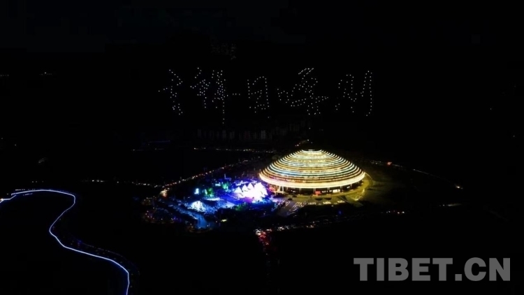 21時30分許,由300架無人機組成的暖場表演在園區(qū)上空精彩呈現(xiàn),組成”珠峰故里、吉祥日喀則,歡迎您!”等陣型。匠心獨運的創(chuàng)意設(shè)計,流光溢彩的聲光電效果,以恢宏氣勢和華麗造型,展示日喀則的開放包容。