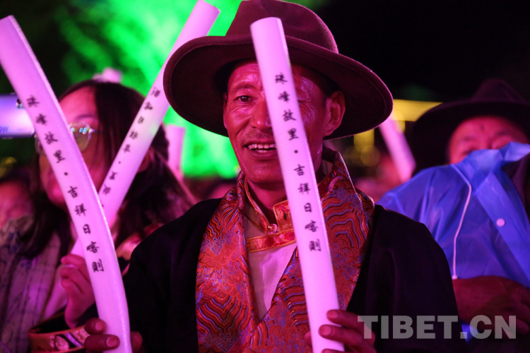 圖為現(xiàn)場觀眾揮舞手中帶有第十八屆珠峰文化藝術(shù)節(jié)字樣的熒光棒 攝影:王佳豪