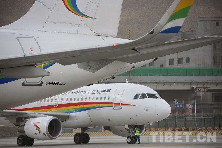 資料圖:飛機(jī)抵達(dá)拉薩貢嘎機(jī)場
