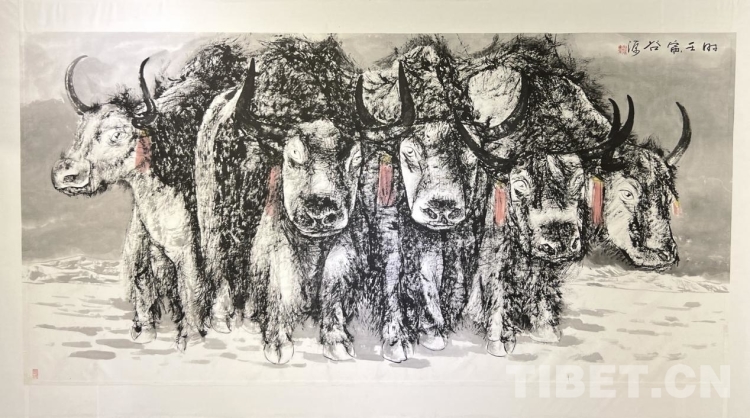 汪仕民介紹,此次《牦牛志·水墨西藏》個(gè)人作品展上,除了水墨作品外,還特地安排了一部分去年疫情封控期間的牦牛畫作和系列風(fēng)景作品配合這次的展出,希望特殊時(shí)期的作品與這次牦牛水墨系列作品能給拉薩市民帶來(lái)一份愜意,和饕鬄般美的享受盛宴?!拔乙蚕Mㄟ^(guò)這次兩百余幅畫作的展出,陶冶豐富拉薩的情操與文化生活,也為西藏文化藝術(shù)發(fā)展盡一份綿力。”汪仕民說(shuō)。