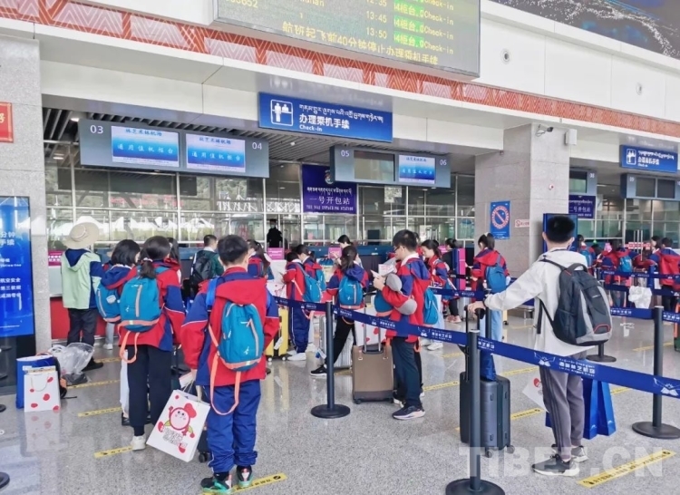 圖為暑運期間旅客在林芝機場辦理乘機手續(xù)