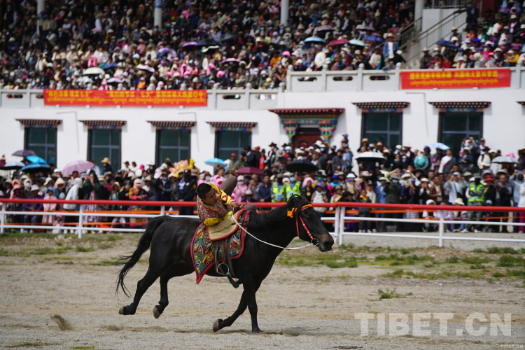 在每年藏歷七月十日,當(dāng)雄縣都會舉行聲勢浩大的“當(dāng)吉仁”賽馬會。如果追溯它的歷史,要從17世紀(jì)蒙古騎兵駐扎在當(dāng)雄這片優(yōu)質(zhì)牧場牧養(yǎng)軍馬開始。牧養(yǎng)軍馬、軍事訓(xùn)練、騎兵檢閱……300多年前的蒙古鐵騎雖然已成為歷史,但賽馬活動卻沿襲傳承至今。2008年6月7日,“當(dāng)吉仁”賽馬會被列為國家級第二批非物質(zhì)文化遺產(chǎn)名錄,成為當(dāng)雄縣乃至西藏一張響當(dāng)當(dāng)?shù)奈幕?/p>