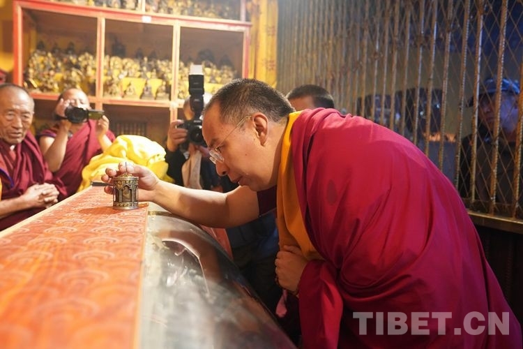 中國(guó)西藏網(wǎng)訊 8月24日,全國(guó)政協(xié)常委、中國(guó)佛教協(xié)會(huì)副會(huì)長(zhǎng)、中國(guó)佛協(xié)西藏分會(huì)會(huì)長(zhǎng)班禪額爾德尼·確吉杰布前往藏傳佛教直孔噶舉派的主寺直孔替寺禮佛講經(jīng)。