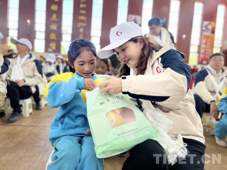 物資捐贈儀式上,共鑄中國心組委會向貢嘎縣崗堆鄉(xiāng)中心小學捐贈暖衣550件和碳酸鈣咀嚼片500盒,向旁多鄉(xiāng)中心小學捐贈保暖衣305余件和碳酸鈣咀嚼片400盒,組委會希望孩子們保暖舒適,健康茁壯成長。