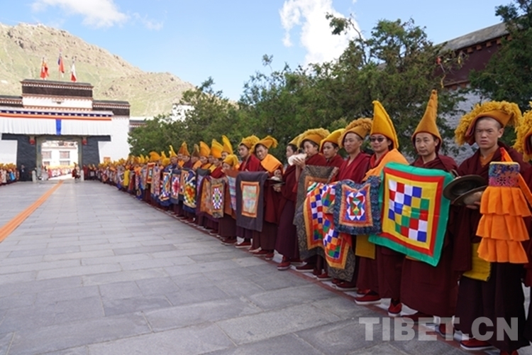 圖為扎什倫布寺僧人以傳統(tǒng)儀式恭迎班禪 攝影:王淑