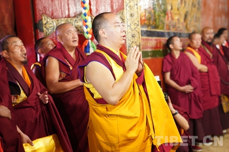 圖為班禪與僧眾共同誦經(jīng)祈福 攝影:王淑