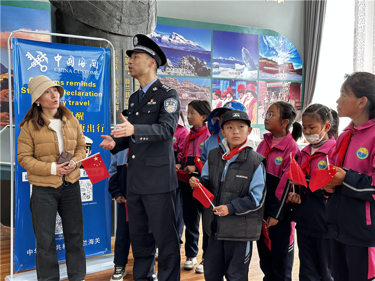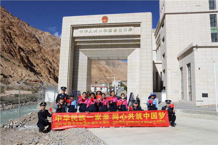 圖為參加活動的民警與學(xué)生在中尼(中國與尼泊爾)9號界樁,開展“傳承紅色基因 弘揚烈士精神”主題宣傳教育活動