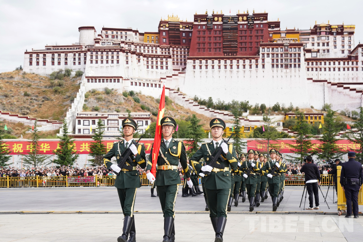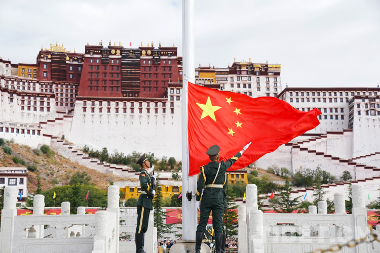 中國(guó)西藏網(wǎng)訊 10月1日上午,西藏自治區(qū)慶祝中華人民共和國(guó)成立74周年“升國(guó)旗、唱國(guó)歌”儀式在布達(dá)拉宮廣場(chǎng)舉行。