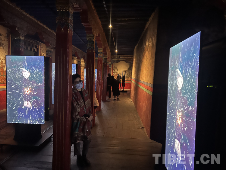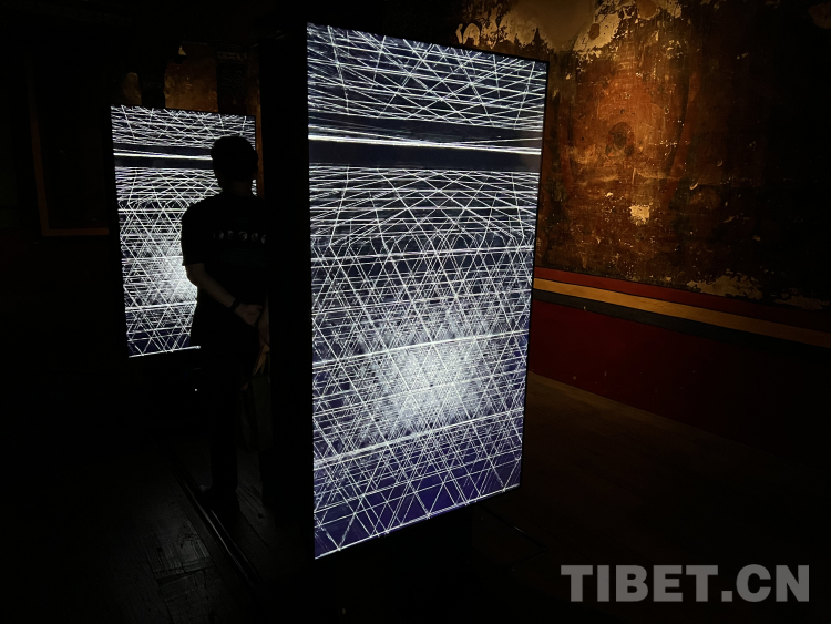 展覽所處的吉本崗藝術(shù)中心前身為“吉崩崗拉康”,是西藏首座古建筑保護(hù)性改造而成的美術(shù)館。這是一座“宇宙模型”,更擁有“神圣空間”的歷史文本:19世紀(jì),西藏地方政府依照藏式建筑中最具代表性的立體壇城結(jié)構(gòu)建造,曾是拉薩古城地標(biāo),凝聚了西藏藝術(shù)、建筑、歷史精粹。在百年時(shí)間里,吉本崗靜穆地見證著拉薩古城驅(qū)逐英國(guó)入侵者、和平解放、民主改革等一系列重要的歷史變遷。如今在這座“完美壇城”內(nèi)又加入了數(shù)字元素,讓參觀者超越百年時(shí)間軸線,靜心感受無(wú)限宇宙。