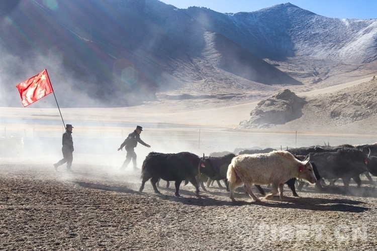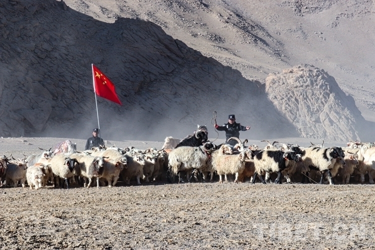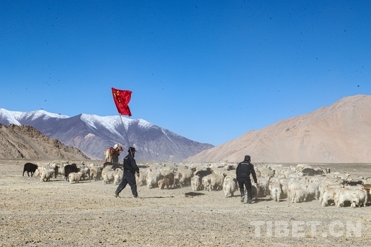 圖為阿里邊境管理支隊日土邊境派出所民警組成護牧隊幫助牧民轉場