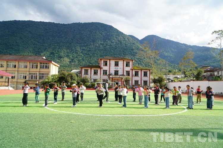 圖為墨脫縣完全小學(xué)學(xué)生正在標(biāo)準(zhǔn)化的操場里上體育課 攝影:趙振宇