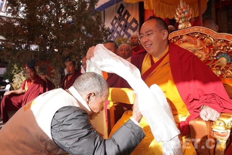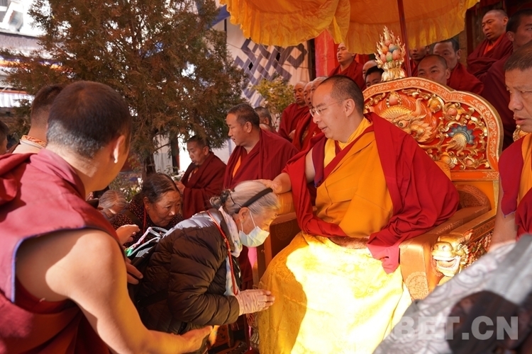 中國西藏網(wǎng)訊 11月13日,全國政協(xié)常委、中國佛教協(xié)會(huì)副會(huì)長(zhǎng)、中國佛協(xié)西藏分會(huì)會(huì)長(zhǎng)班禪額爾德尼·確吉杰布在西藏日喀則市扎什倫布寺多加大院為信教群眾摸頂賜福,這是近年來規(guī)模最大的一次班禪摸頂賜?;顒?dòng)。