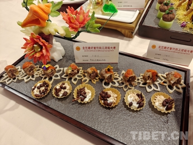 獨(dú)具藏民族特色和西藏本土特點(diǎn)的藏式烹調(diào)比賽現(xiàn)場(chǎng),參賽選手們分三輪進(jìn)行角逐,每位參賽選手要在規(guī)定時(shí)間內(nèi)獨(dú)立完成2道使用藏式烹飪手法或西藏特色食材制作的菜品,1道指定菜品和1道自選菜品。