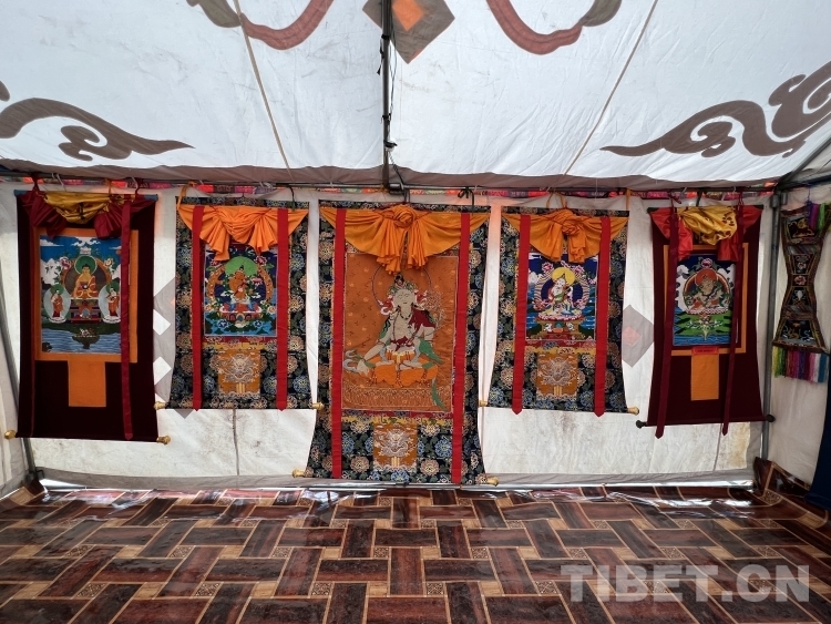 中國西藏網(wǎng)訊 在你印象中,西藏唐卡是怎樣的呢?除了一筆一畫的匠心工筆外,還有一針一線的飛針走線。2023年盛夏8月,記者在西藏日喀則市定結(jié)縣第十七屆夏爾巴旅游文化節(jié)展銷會(huì)上采訪時(shí),遇到了難得一見的“珍珠唐卡”。在白帳篷里,一對夫妻正埋頭干針線活,他們端坐在木質(zhì)繡架前一針一線串起珍珠、綠松石、珊瑚等珍貴珠寶,在這熱鬧的集市中顯得格外寧靜。