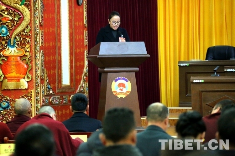 圖為強(qiáng)巴措珍在拉薩市政協(xié)第十二屆四次會議第二次全體會議上發(fā)言 攝影:王佳豪
