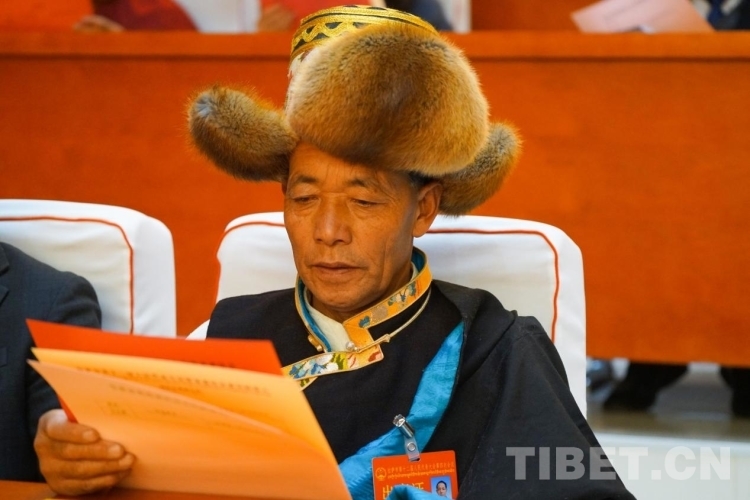 圖為拉薩市第十二屆人大代表認(rèn)真閱讀大會(huì)選票 攝影:旦曲