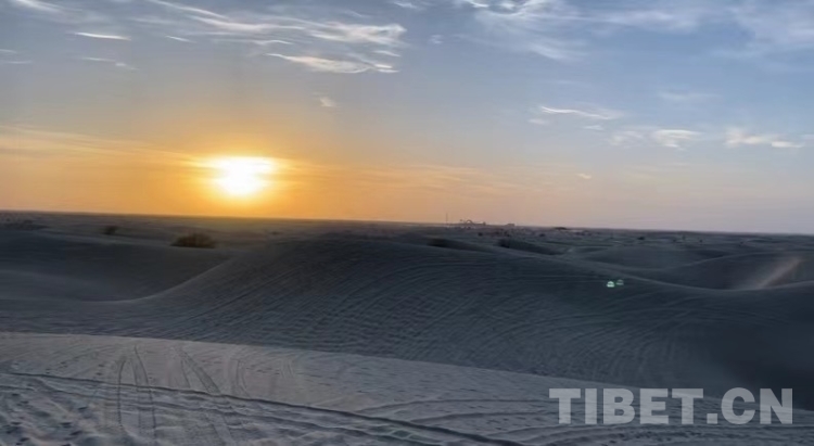 與沙漠落日相遇這一刻,用照片定格下來。從此對“大漠孤煙直,長河落日圓”的意境有了實(shí)感,我們記住了這獨(dú)特的美麗,也記住了沙漠邊的人們擁有著莫大的生活熱情。