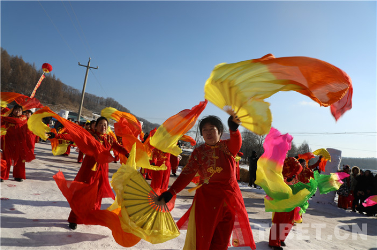 滿是積雪的雪原鄉(xiāng)村煥然一新,整整齊齊的迎賓雪人站立路旁,彩旗迎風(fēng)招展,紅彤彤的燈籠飄在空中,遠遠就看到東北大秧歌熱情地在村子的街道上舞動。