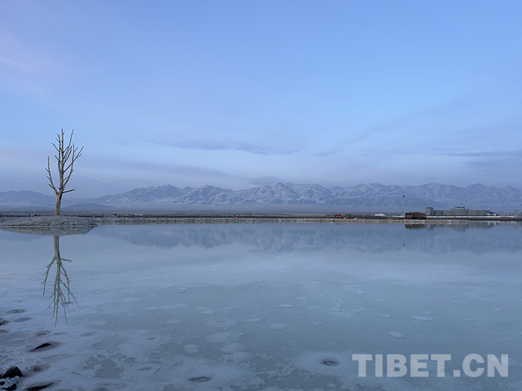 茶卡鹽湖是固液并存的鹵水湖,蒙古語稱“達布遜沃爾”,意為青色的海,此地也以盛產(chǎn)大青鹽馳名,岸邊淺灘隨處可見析出的白色鹽晶。湖泊位于柴達木盆地最東段,地勢相對低洼開闊,北依祁連山支脈完顏通布山,南靠昆侖山支脈旺尕秀山,兩山常年被積雪覆蓋,形成雪峰與湖泊珠璧交輝的獨特高原風光。(中國西藏網(wǎng) 文/李一凡 張萌萌 龍真多吉)
