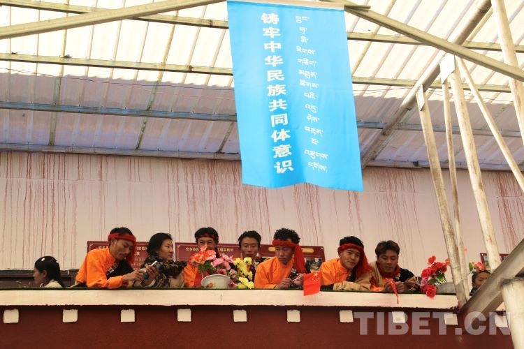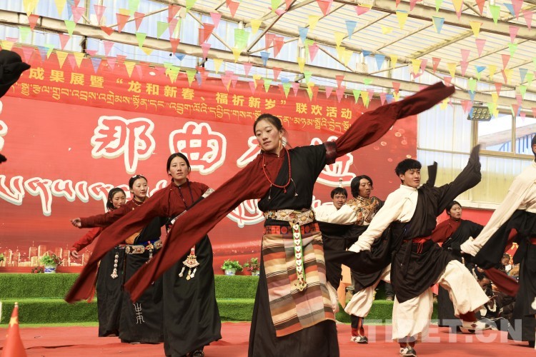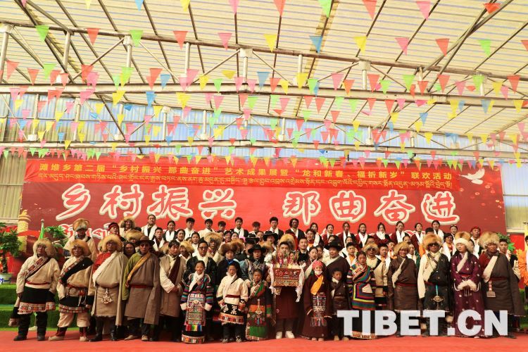 中國西藏網(wǎng)訊 2月10日,中國西藏信息中心“新春走基層”青藏線采訪組一行,來到西藏自治區(qū)那曲市安多縣灘堆鄉(xiāng),適逢當(dāng)?shù)卦谂e辦灘堆鄉(xiāng)第二屆“鄉(xiāng)村振興 那曲奮進(jìn)”藝術(shù)成果展暨“龍和新春、福祈新歲”聯(lián)歡活動(dòng)。采訪組一行來到鄉(xiāng)政府對面的灘堆鄉(xiāng)文化站,記者在現(xiàn)場看到許多穿著具有當(dāng)?shù)孛褡逄厣椀娜嗽诖司奂?。在好奇心的?qū)使下,經(jīng)詢問當(dāng)?shù)馗刹坎胖溃瑸橄灿?024春節(jié)和藏歷新年,感激黨和國家的關(guān)心關(guān)懷,歌頌如今來之不易的幸福生活,鄉(xiāng)村文藝隊(duì)特此精心準(zhǔn)備了文藝節(jié)目,以嶄新的面貌和昂揚(yáng)的精神展現(xiàn)新時(shí)代牧民群眾的精神風(fēng)貌和幸福生活。