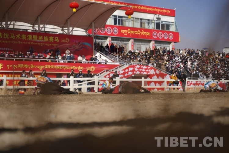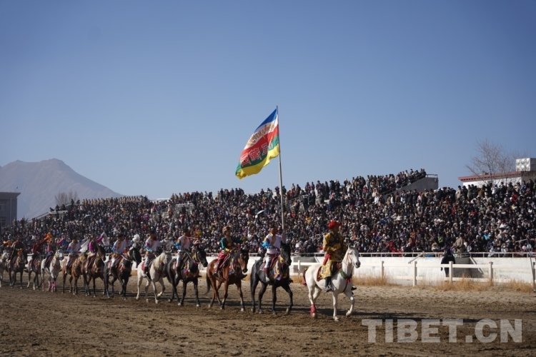中國西藏網(wǎng)訊 2月12日上午,藏歷木龍新年初三民族傳統(tǒng)馬術(shù)表演暨民族賽馬活動在拉薩賽馬場舉行。此次活動包括民族賽馬和馬術(shù)表演。其中,民族賽馬包括3000米、5000米、8000米三個項目,馬術(shù)表演共有18個大項、20余個小項。馬術(shù)表演與民族賽馬穿插進行。現(xiàn)場約8000名觀眾共同欣賞了精彩的馬術(shù)表演,觀看了激烈的速度賽馬,共慶佳節(jié)。