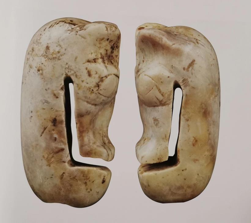 在浙江杭州良渚博物院,可以看到良渚古國統(tǒng)治者身上穿戴成串的玉牌上刻畫有龍頭,玉手鐲上也突出刻畫龍形象。這些龍形玉器是幻想產(chǎn)物,主要作用是溝通人與超自然世界。前面(注:【龍年話龍】第二期)我們講過龍形玉器如何成為天人溝通、人神溝通的中介物,龍的出現(xiàn),接替以往由玉禮器單獨承擔的通神通天的儀式功能。