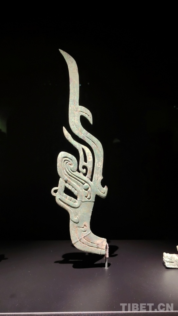 圖為三星堆二號祭祀坑出土青銅龍,頭頂玉璋,攝于三星堆博物館。距今約3000年